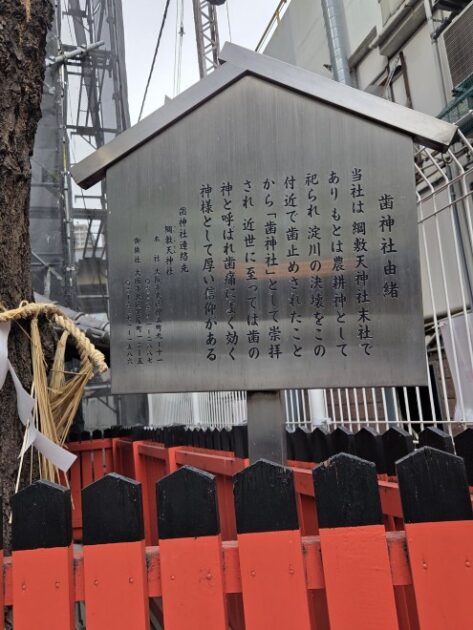 「歯神社」は江戸時代中期から続く歴史がある神社で、もともと農耕の神様であったといわれ、淀川が氾濫した時にご神体の巨石が歯止めして農民たちを守ったことが由来だそうです。歯止めしたことから「歯の痛みを止める」という歯の神様信仰が生まれたとも言われています。