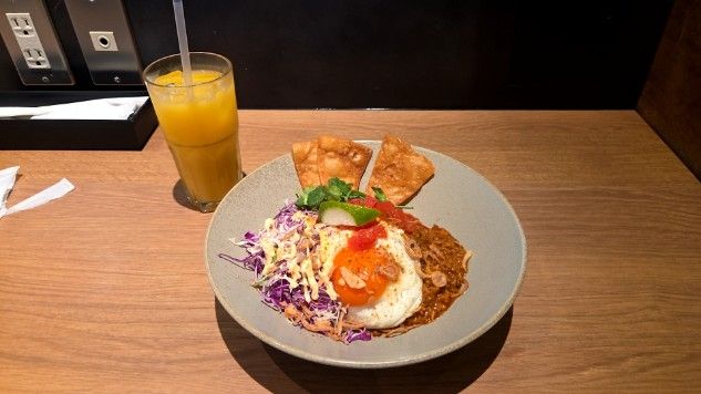 悩みに悩んで選んだのは、WIREDタコライス14種のスパイス入りとオレンジジュースを注文🍴