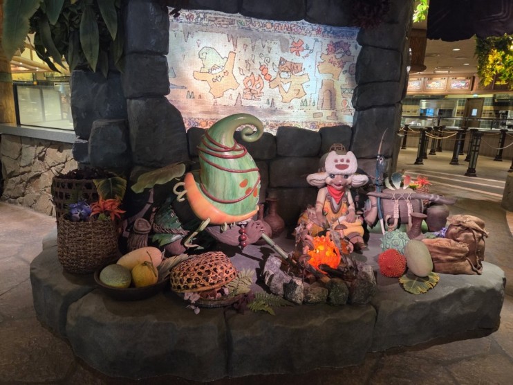 中に入るとモリバーとアイルーが焚き火を囲んでいてかわいかったです🥰
