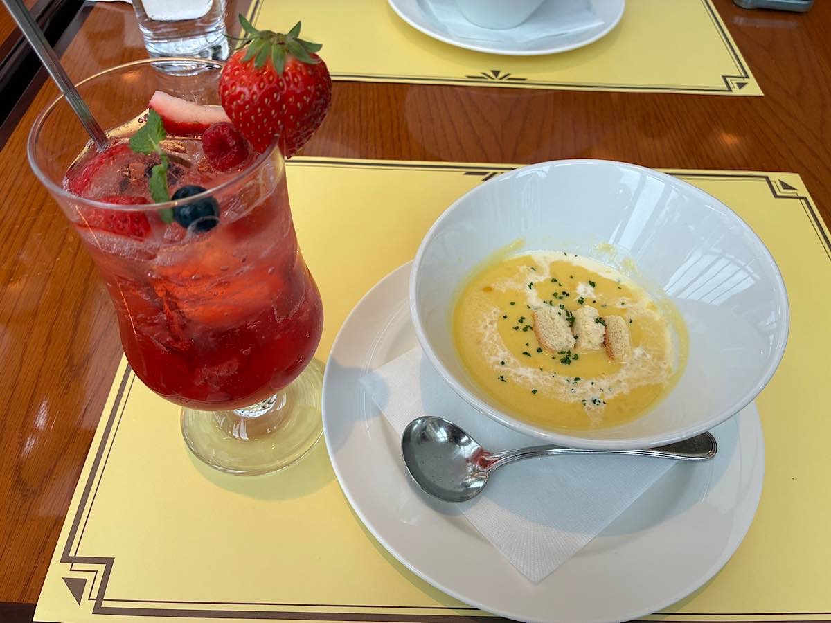 ここではコーンスープを注文、ついでに写真映えしそうなお酒も一緒に^^