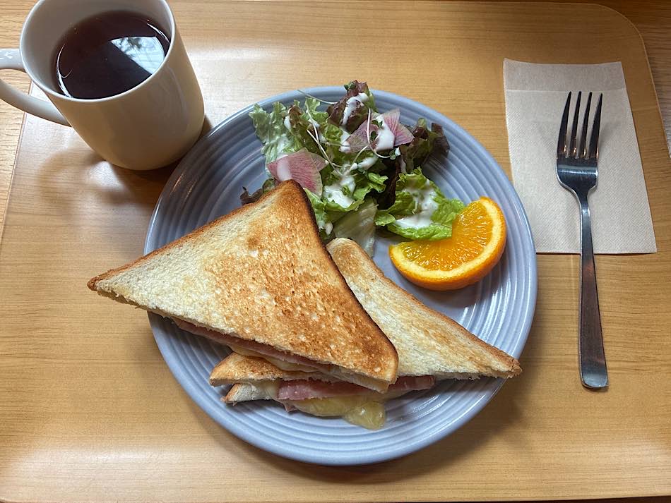 ハムとチーズのホットサンド、そしてこの日は少し肌寒かったのでホットの紅茶に🌟