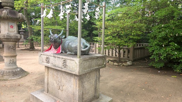 「頭をなでると賢くなれる」「けがや病気のある箇所をなでると回復する」といわれる撫で牛です。